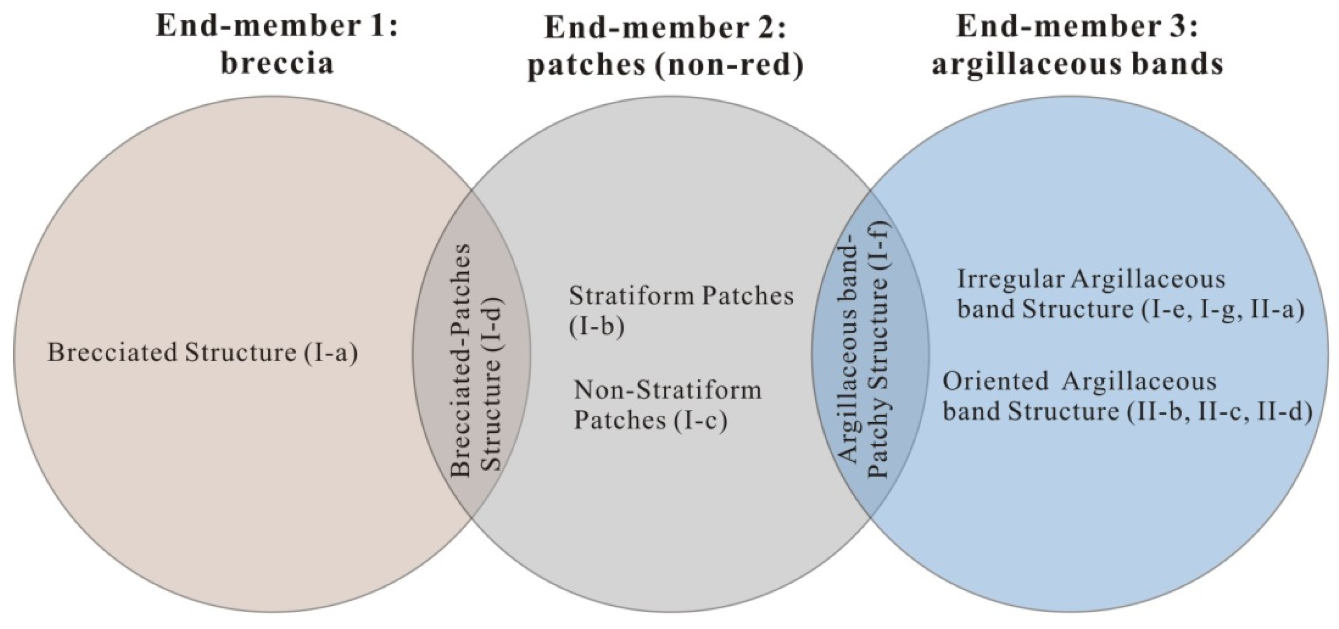 - A new genetic classification scheme is proposed, subdividing the sedimentary structures into ten distinct subtypes. These subtypes are categorized into three key genetic end-members: the breccia, patch, and argillaceous band end-members.
