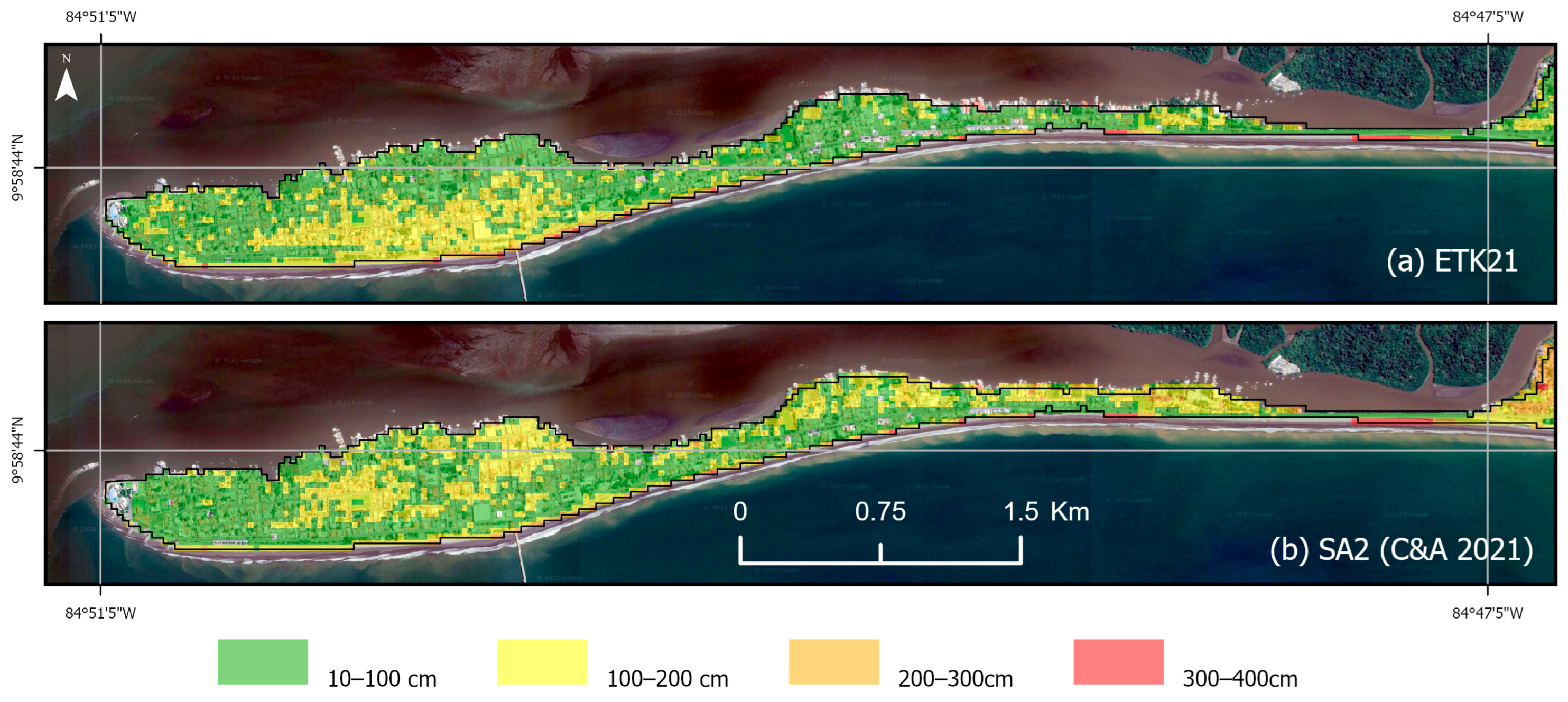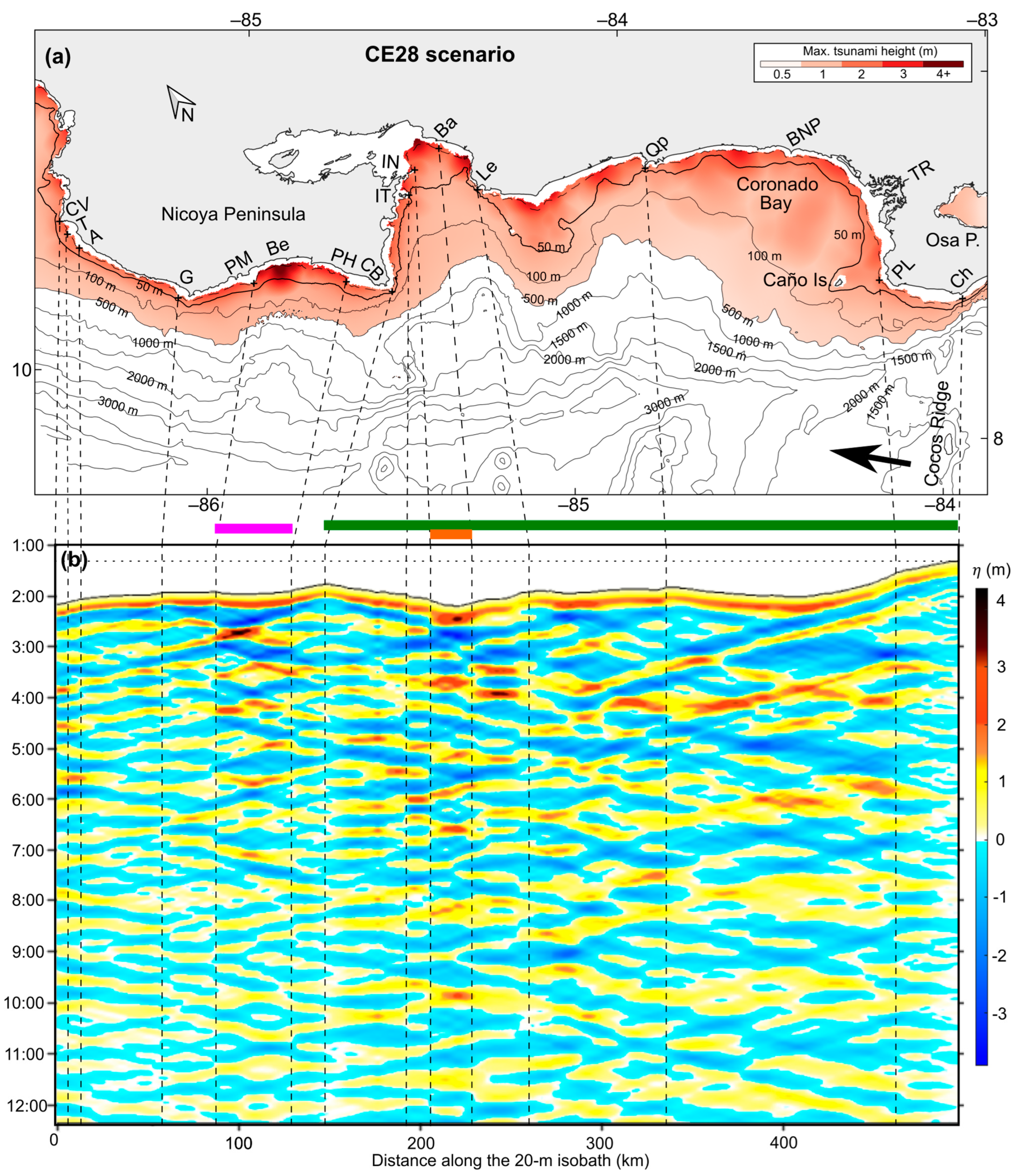 - Chacón-Barrantes, S.; Arozarena-Llopis, I. A First Estimation of Tsunami Hazard of the Pacific Coast of Costa Rica from Local and Distant Seismogenic Sources. Ocean. Dyn. 2021, 71, 793–810. [Google Scholar] [CrossRef]