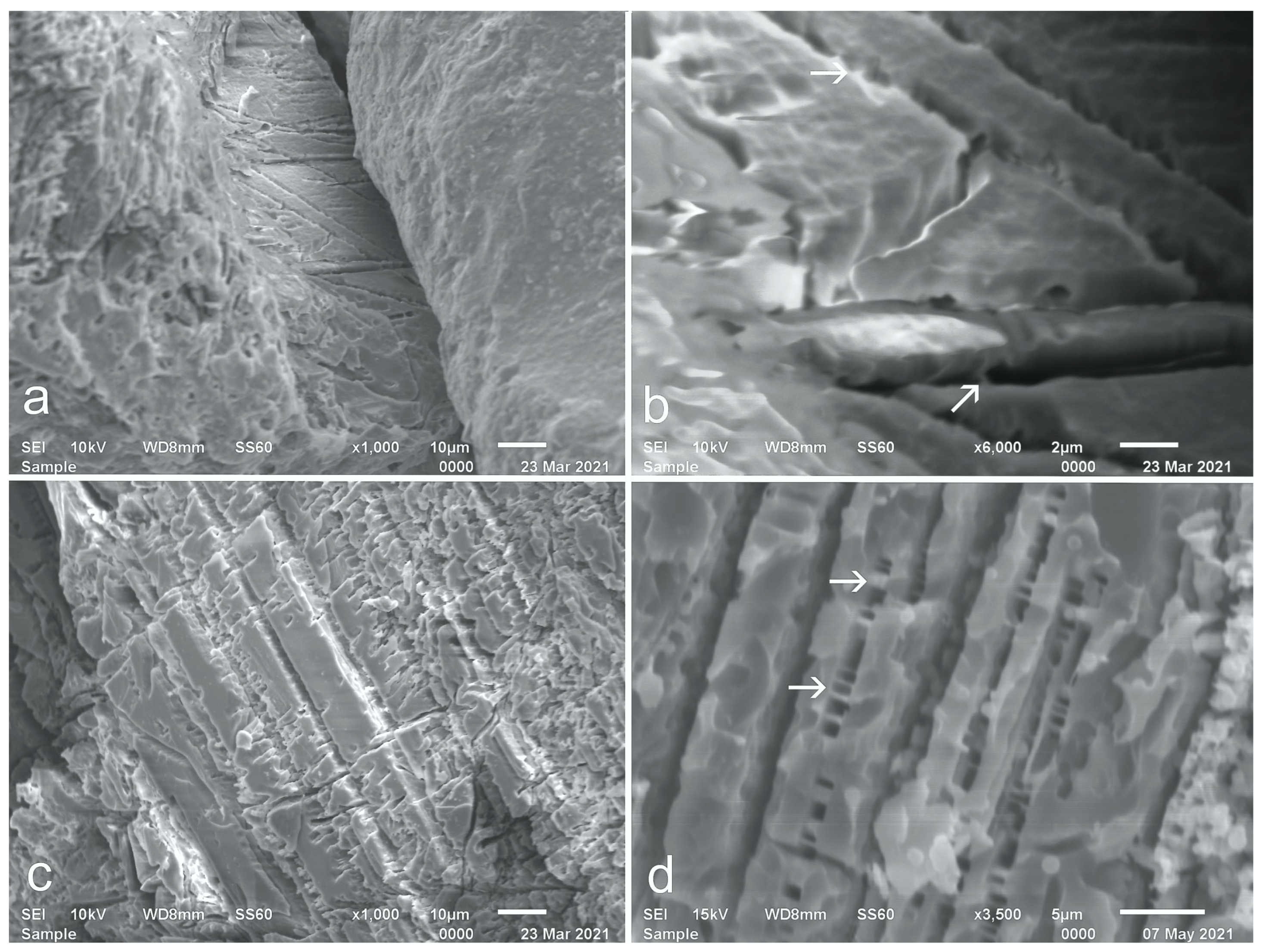 - Gratz, A.J.; Fisler, D.K.; Bohor, B.F. Distinguishing shocked from tectonically deformed quartz by the use of SEM and chem-ical etching. Earth Planet. Sci. Lett. 1996, 142, 513–521. [Google Scholar] [CrossRef]