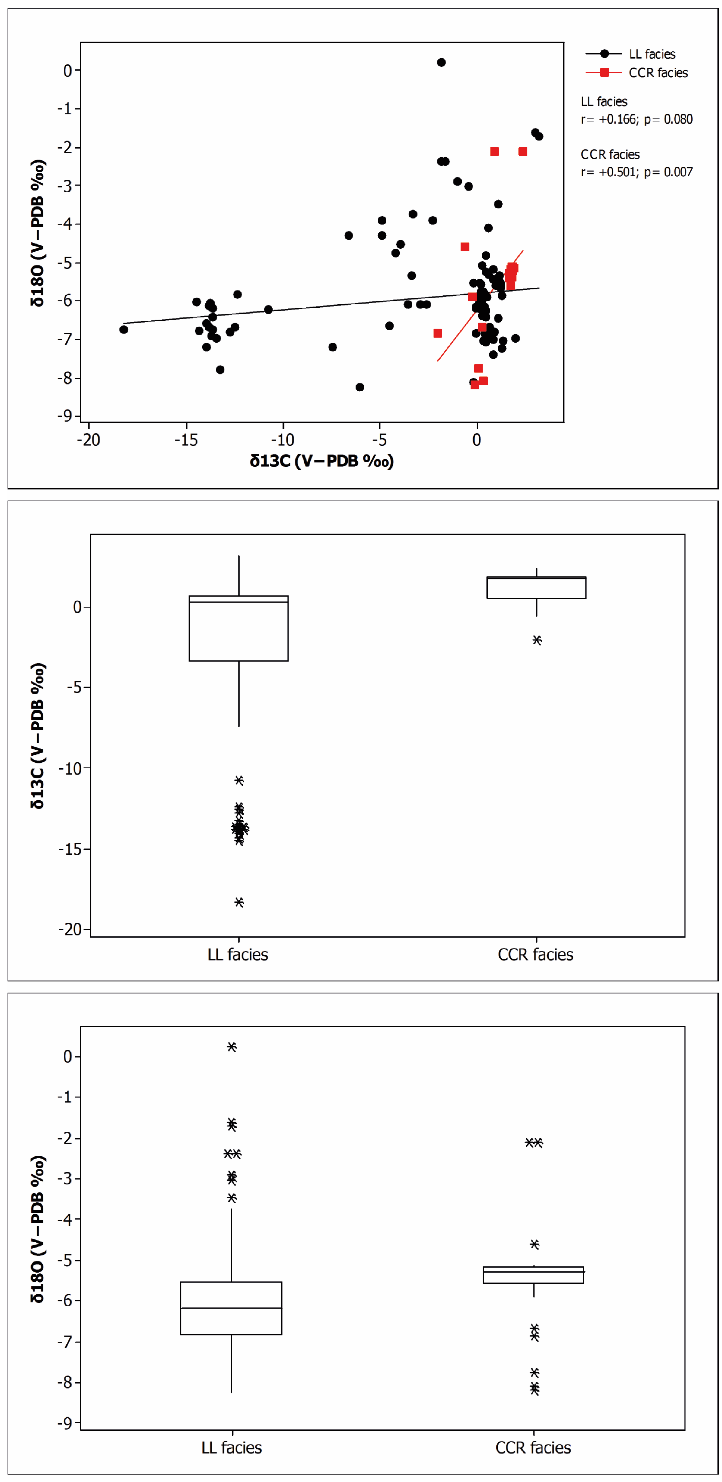 | δ18O CCR | 28 | −2.10 | −8.19 | −5.44 | 1.33 | −5.55 | −5.27 | −5.17 | 0.38 |