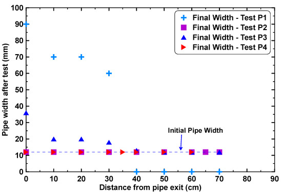 The pipe diameter for P1–P4 tests will be distributed along the length of the soil pipe at the end of the experiment. The pipe width was measured by dissection of the soil in the physical model.