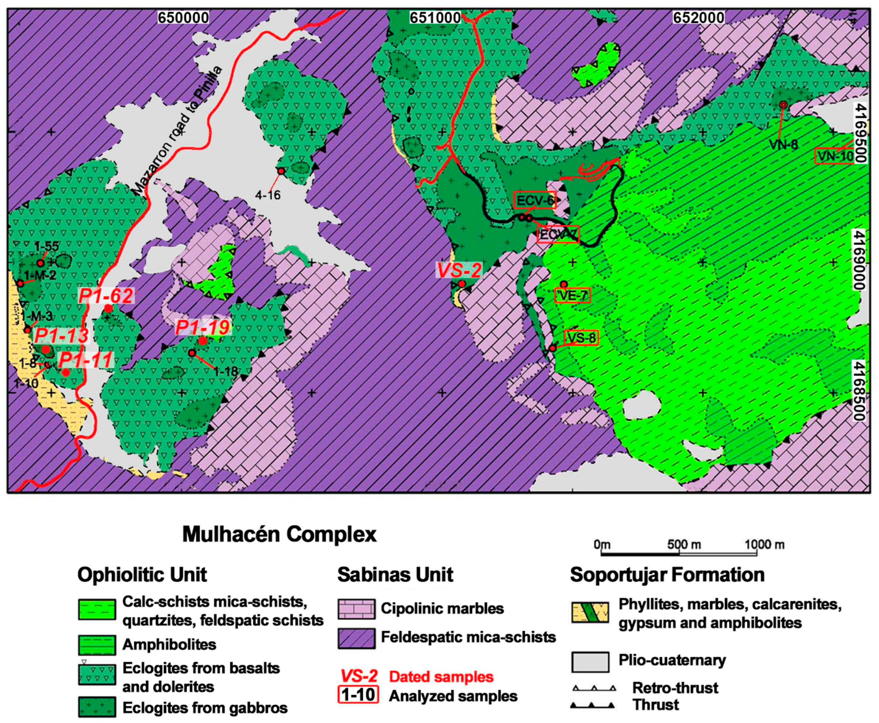 - Linthout, K. (Vrije Universiteit Amsterdam, Amsterdam, The Netherlands). Personal communication, 2009. During a field visit with Prof. Linthout we examined an outcrop of the Ophiolitic Mélange south of Macael consisting of metapelites with chromium-rich layers and containing also decimeter-sized pockets of exceptionally pure jadeite (95–98% Jd).