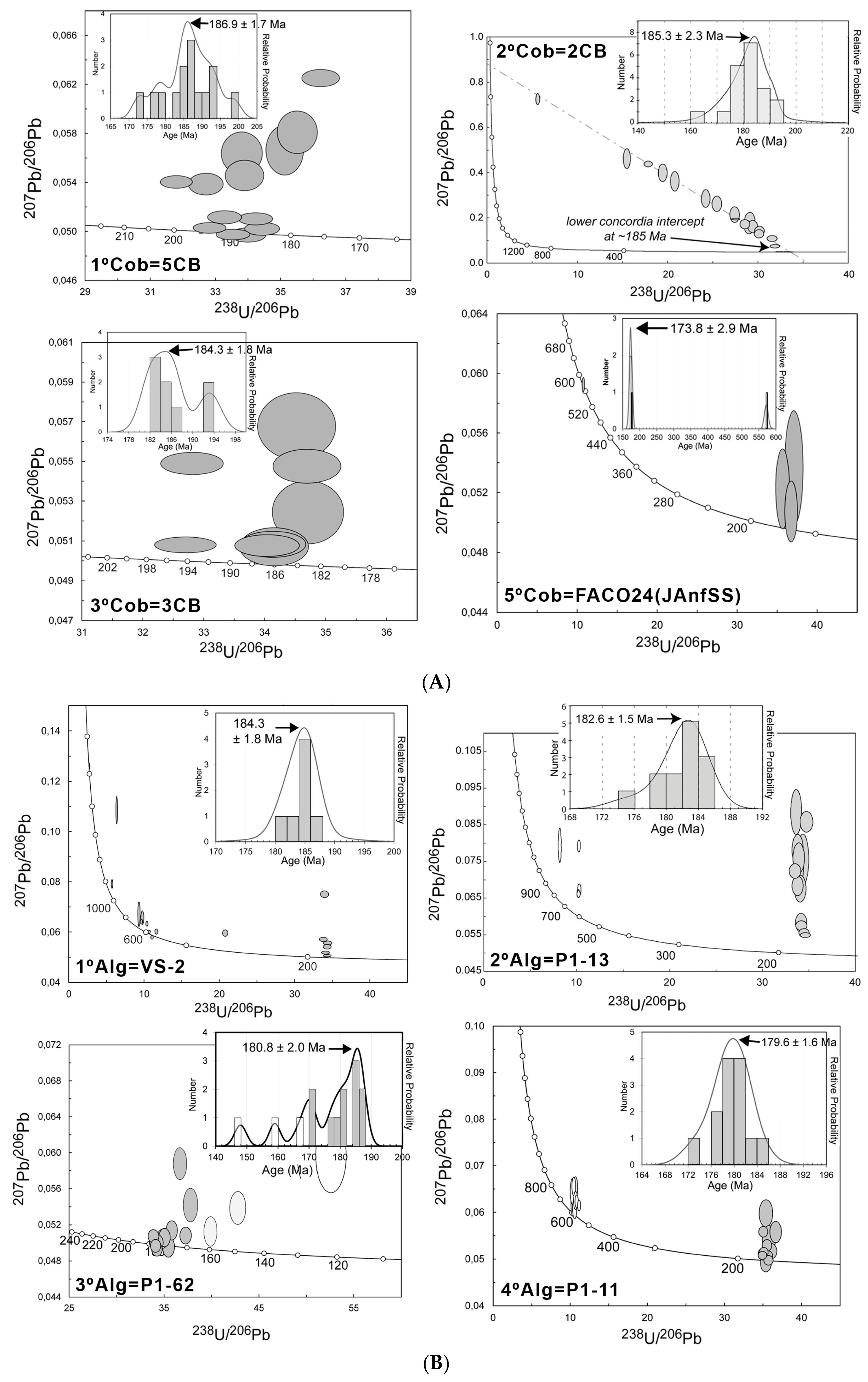 5.1. SHRIMP U-Pb Data Results for Zircons from Cóbdar and Algarrobo