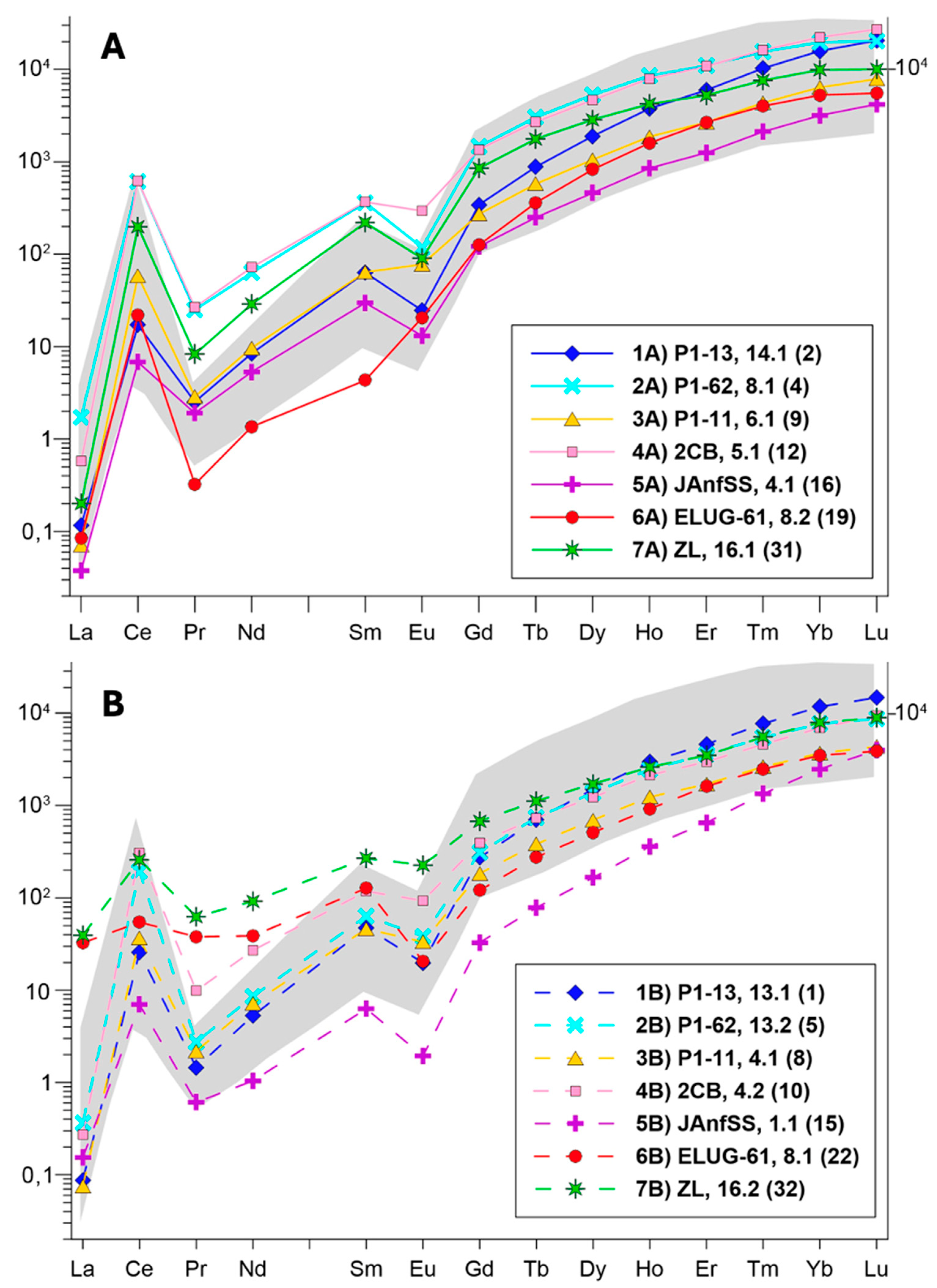- The chondrite-normalized REE patterns of Jurassic igneous zircons from the Betic ophiolites are consistent with those of zircons from oceanic crust. Furthermore, their more recrystallized domains, commonly found surrounding vesicles, exhibit a slight depletion in HREE and Y, alongside a local increase in LREE and Hf values. This geochemical signature is also similar to that observed in other Tethyan ophiolites.