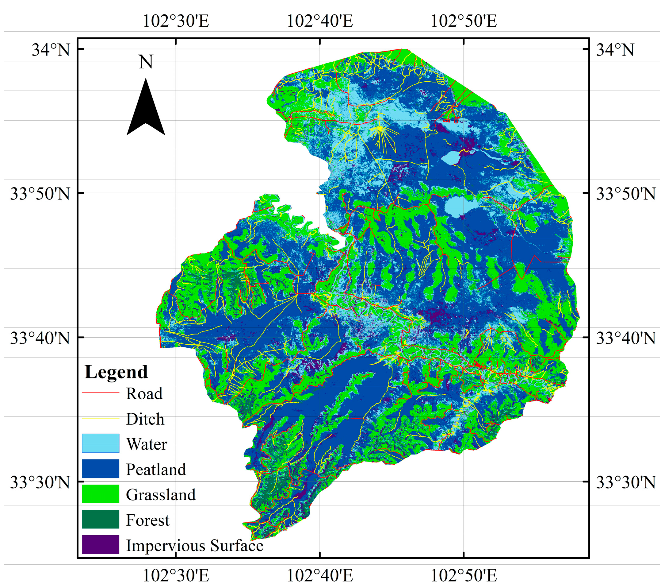- Gaffney, P.P.J.; Tang, Q.; Li, Q.; Zhang, R.; Pan, J.; Xu, X.; Li, Y.; Niu, S. The impacts of land-use and climate change on the Zoige peatland carbon cycle: A review. WIREs Clim. Chang. 2023, 15, e862. [Google Scholar] [CrossRef]