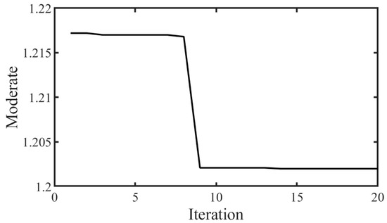 In the equation, T denotes the current iteration number, T max represents the maximum number of iterations, and θ varies with the iteration progress. Its calculation is given by: