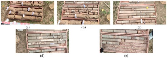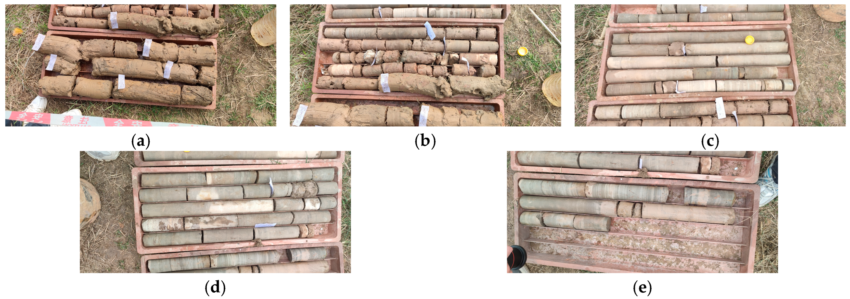 Figure 14. Actual Core Samples (a) The first section of core; (b) the second section of core; (c) the third section of core; (d) the fourth section of core; and (e) the fifth section of core.