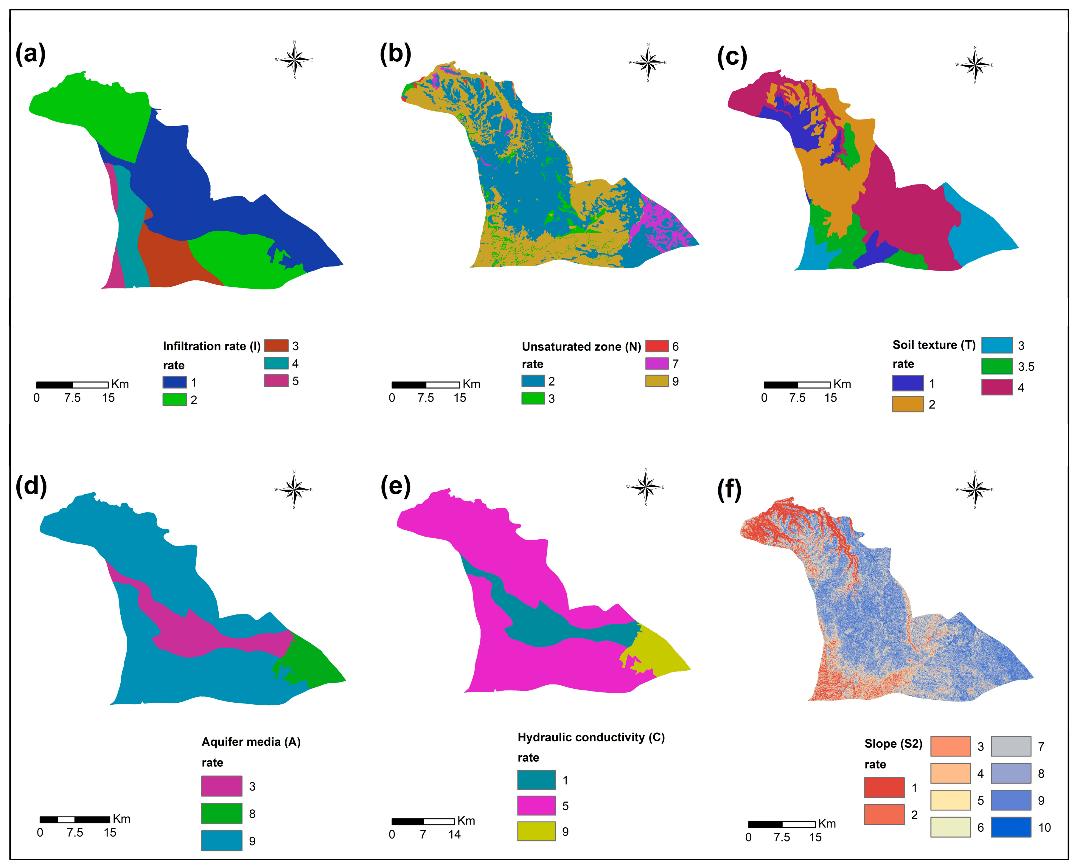 | Aquifer media (A) (Class) | 4 | Coarse alluvial deposits | 4–9 | Sandstone, conglomerate | 4–9 |