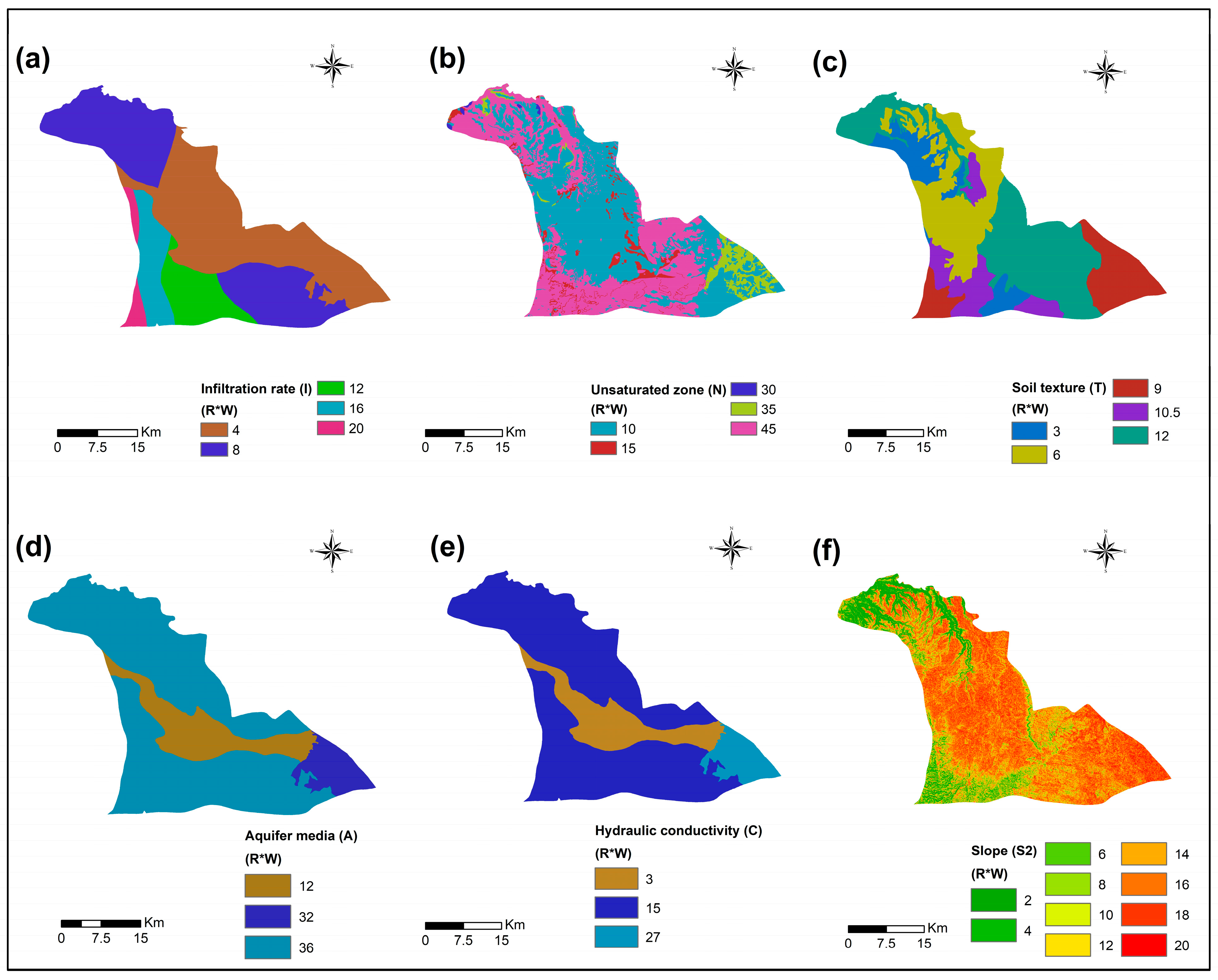 - Sahu, I.; Prasad, A.; Ahmad, I. Groundwater vulnerability assessment using SINTACS model and GIS: A case study in Raipur city. In IOP Conference Series: Earth and Environmental Science; IOP Publishing: Bristol, UK, 2022; Volume 982, p. 012070. [Google Scholar]