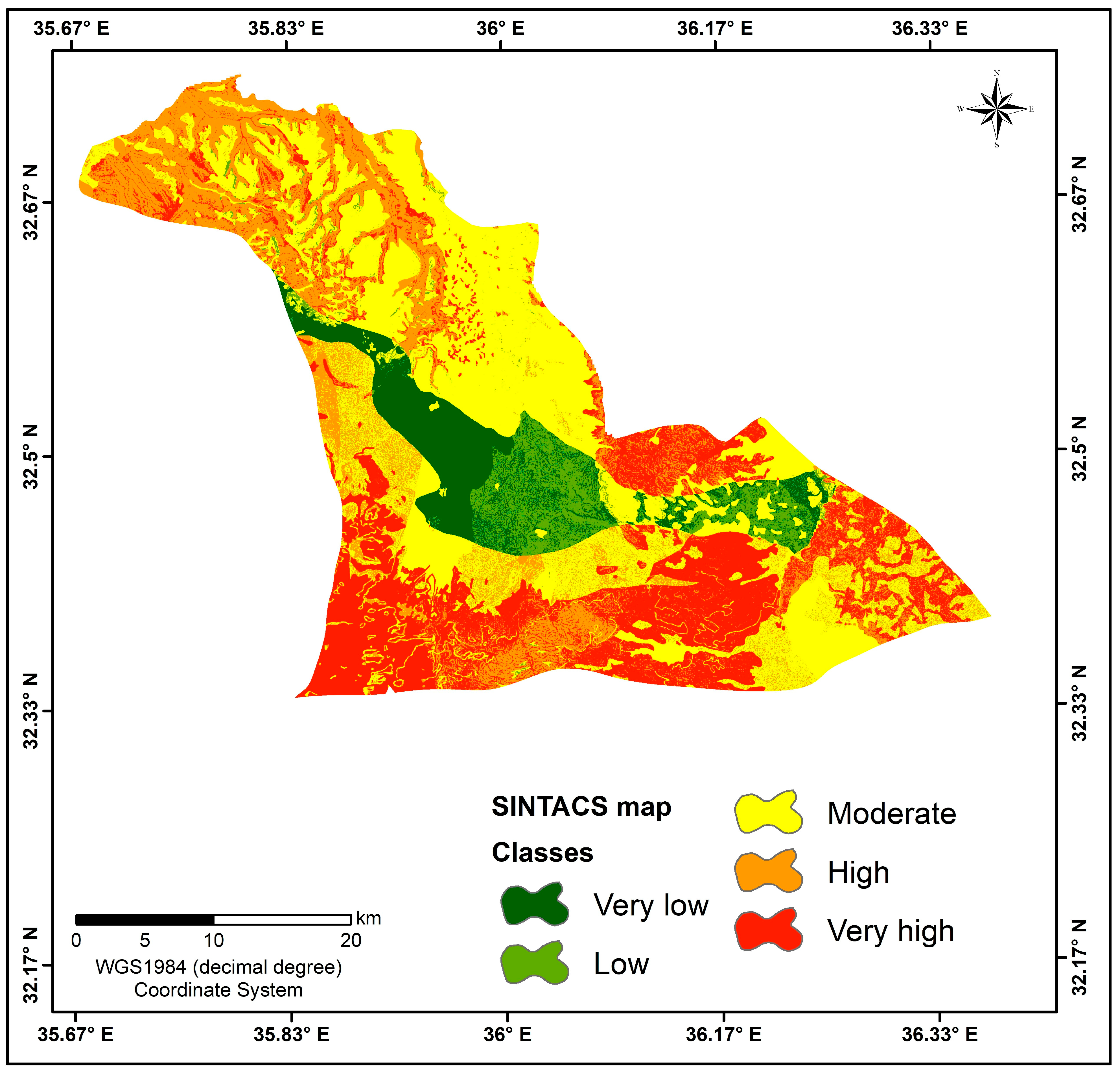 - Awawdeh, M.; Al-Kharabsheh, N.; Obeidat, M.; Awawdeh, M. Groundwater vulnerability assessment using modified SINTACS model in Wadi Shueib, Jordan. Ann. GIS 2020, 26, 377–394. [Google Scholar] [CrossRef]