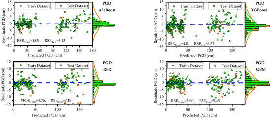 Scatter plot of residuals showing the distribution of prediction errors for PGD across developed models.