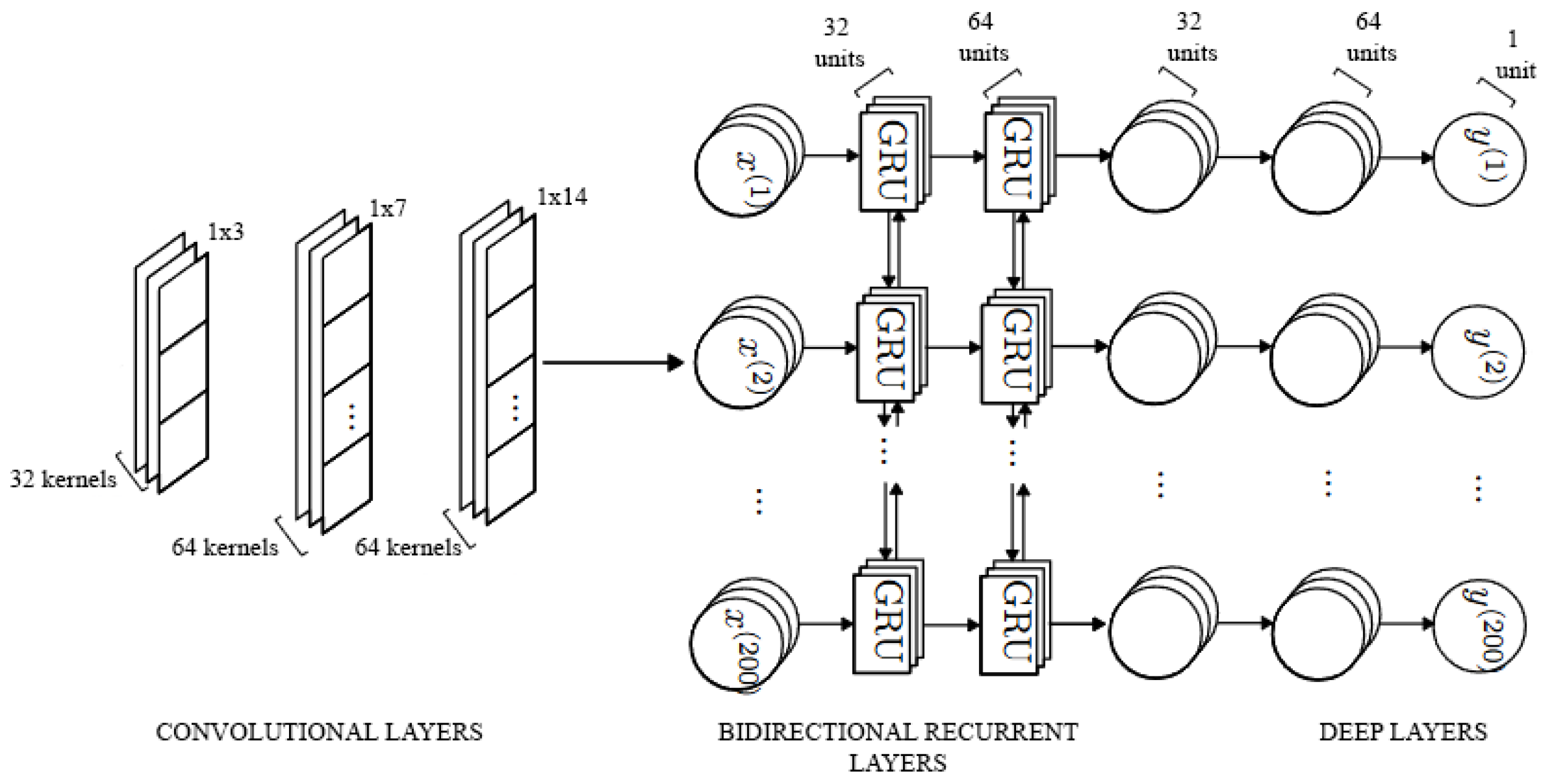 - Recurrent backbone (context): Two bidirectional gated recurrent unit (GRU) layers with 32 and 64 units, using tanh activations to capture sequential dependence along depth.