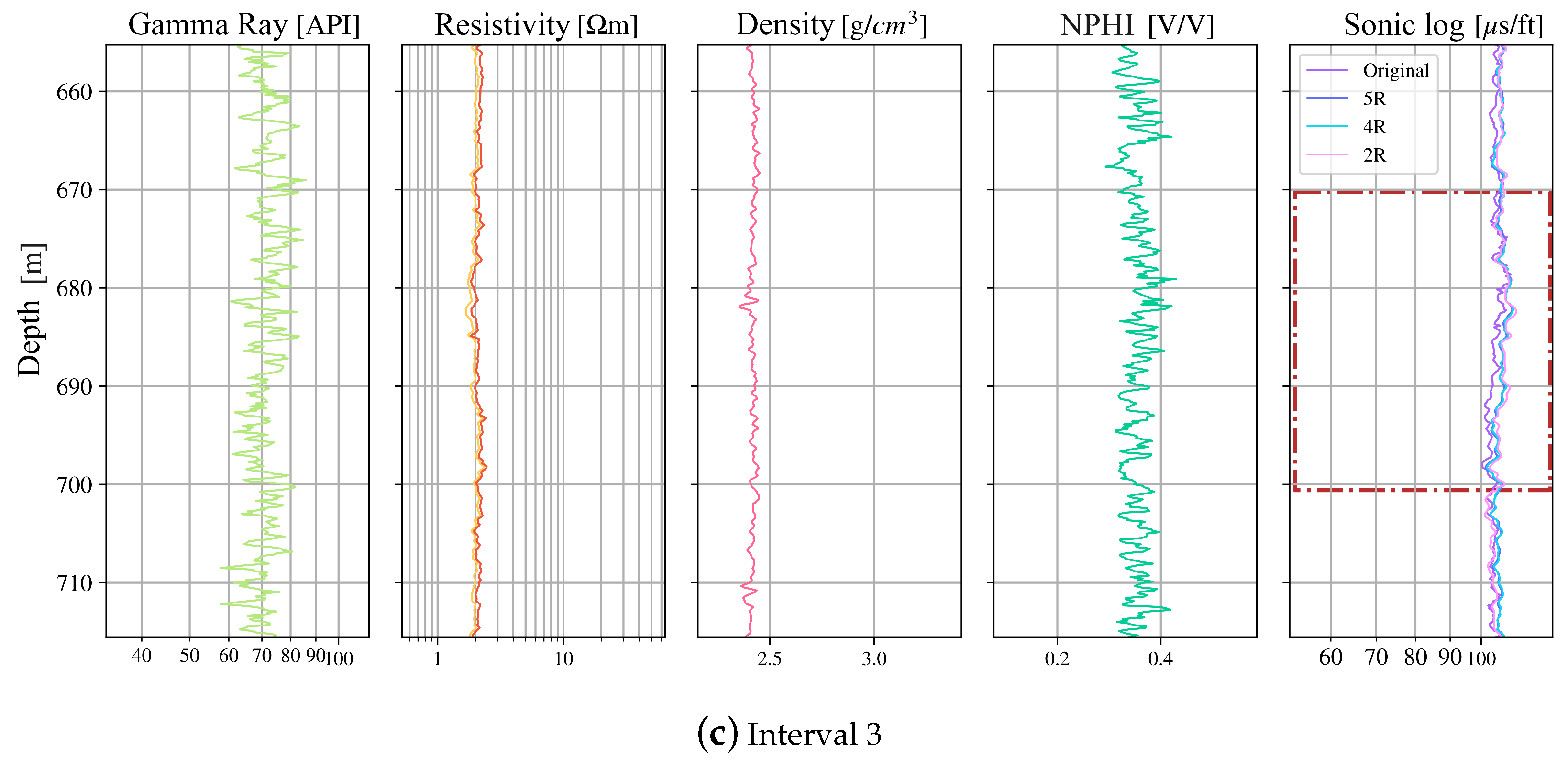 - 5R model includes all five logs (Gamma Ray, Resistivity, Neutron Porosity, Bulk Density, and Sonic);