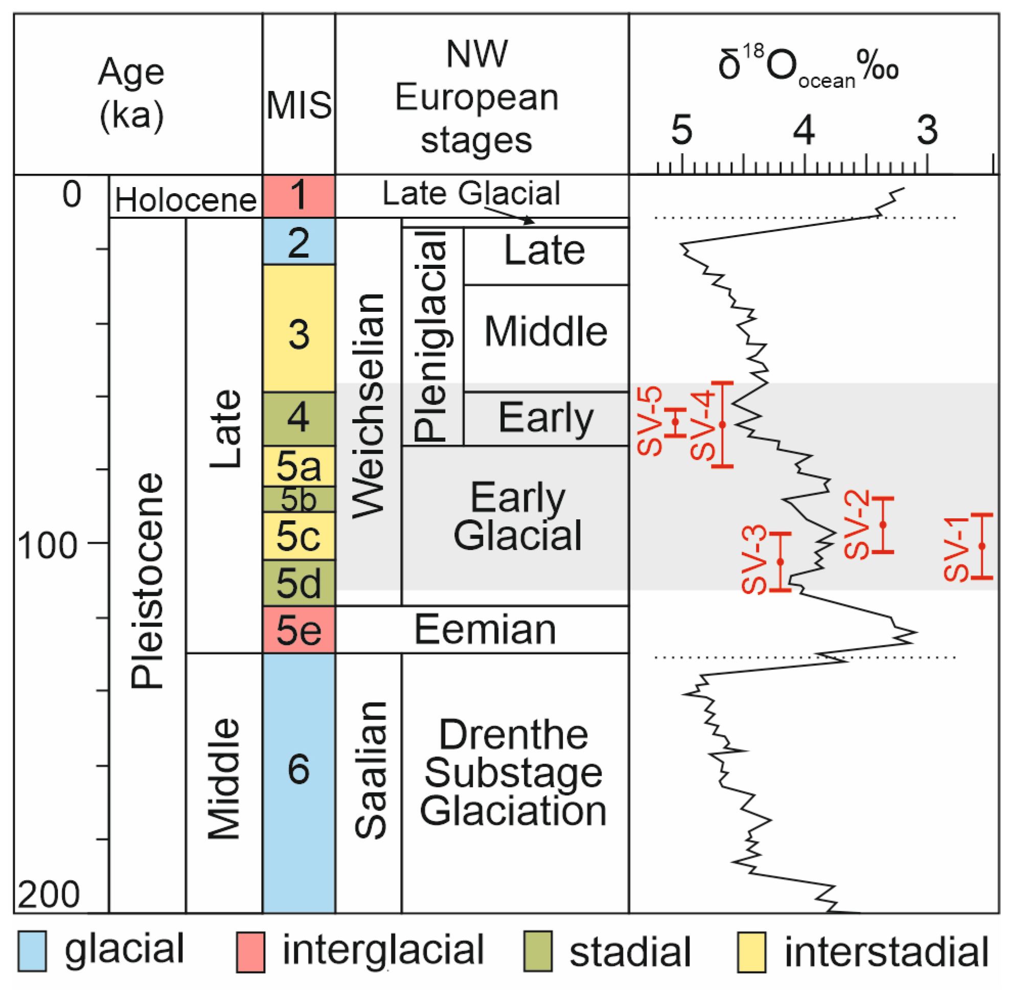 - Cohen, K.; Gibbard, P. Global Chronostratigraphical Correlation Table for the Last 2.7 Million Years v. 2019 (Poster Version), 2nd ed.; Mendeley Data: London, UK, 2022. [Google Scholar]