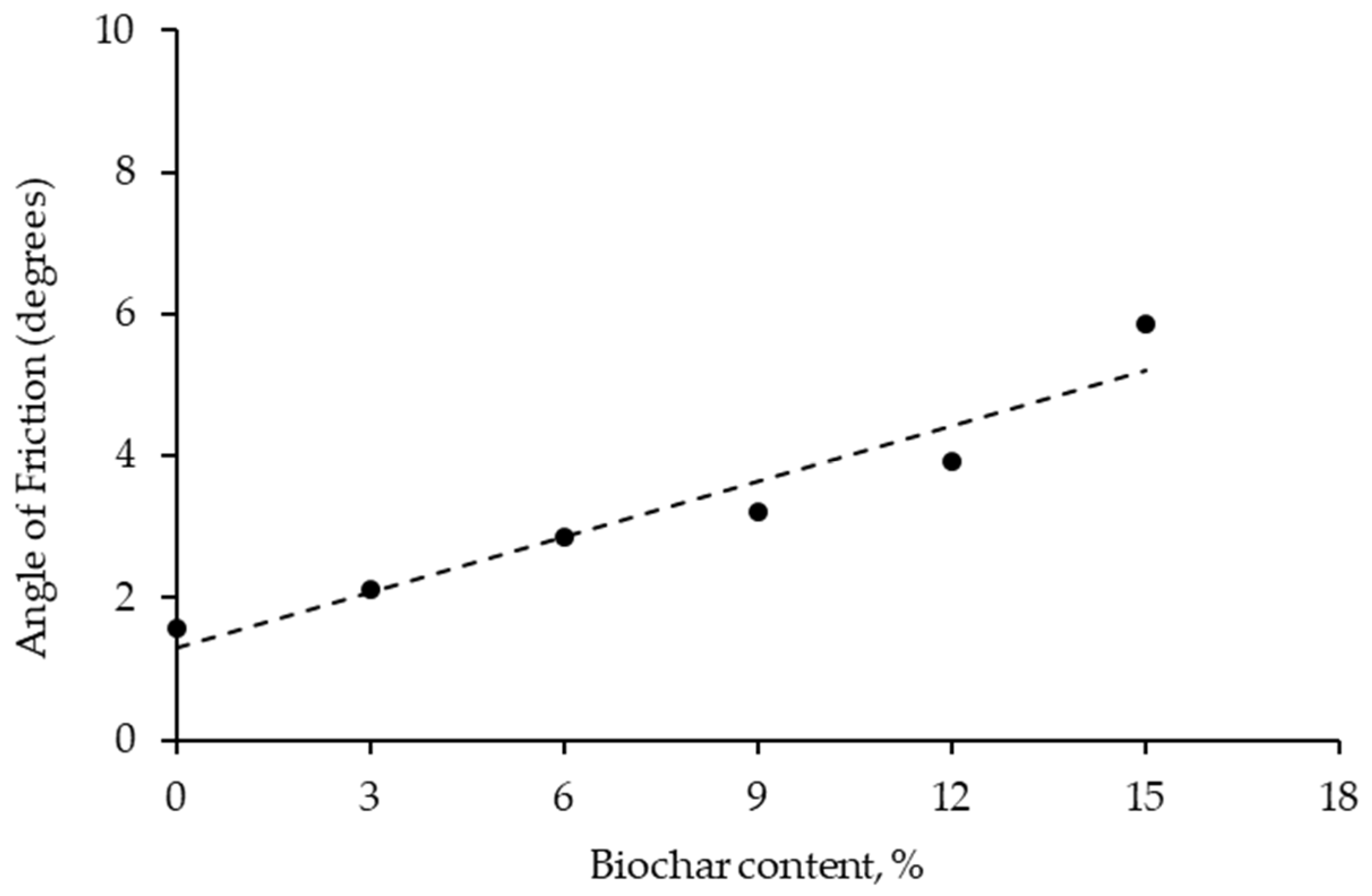 | Biochar Content, % | 0 | 3 | 6 | 9 | 12 | 15 |