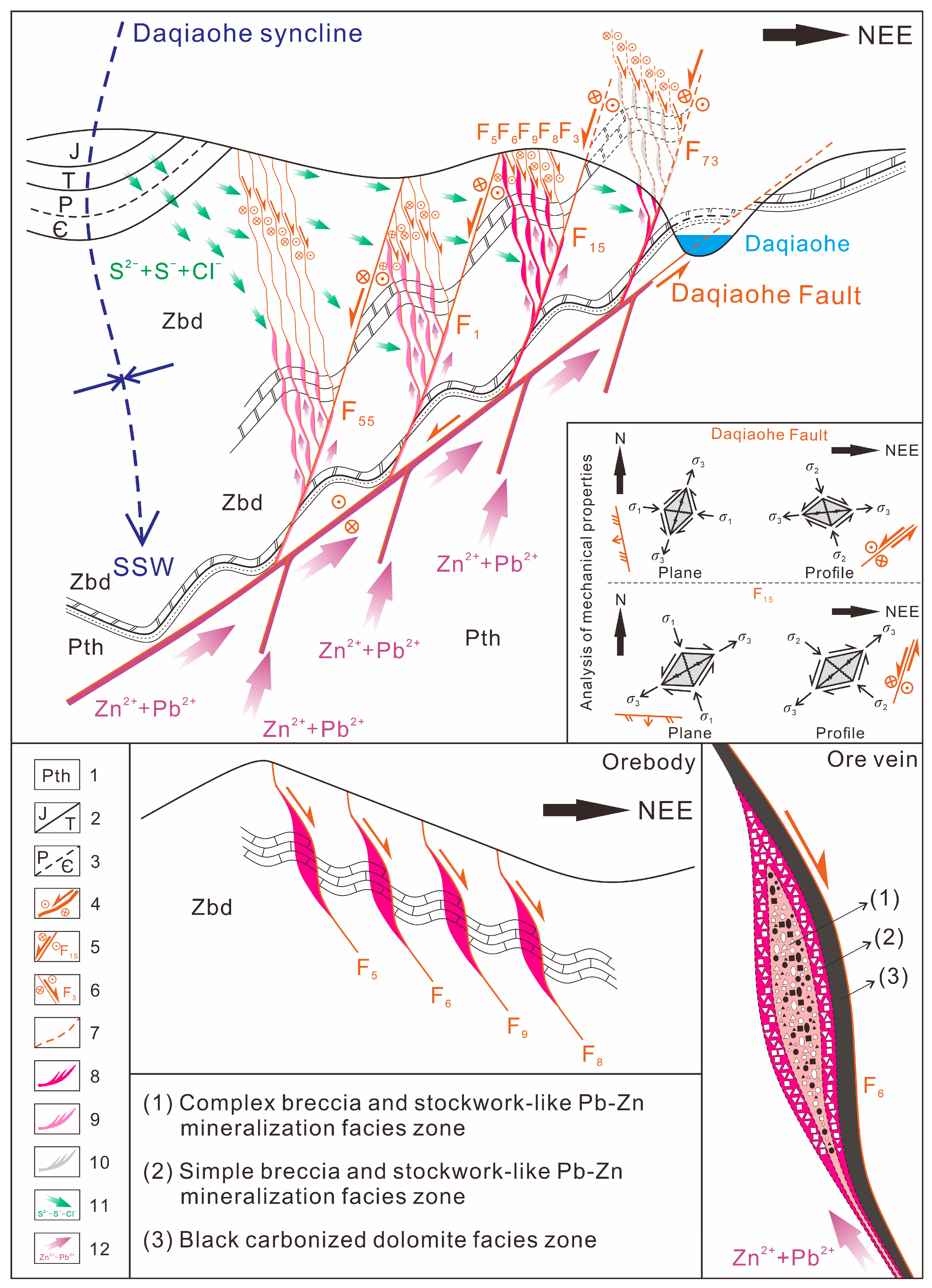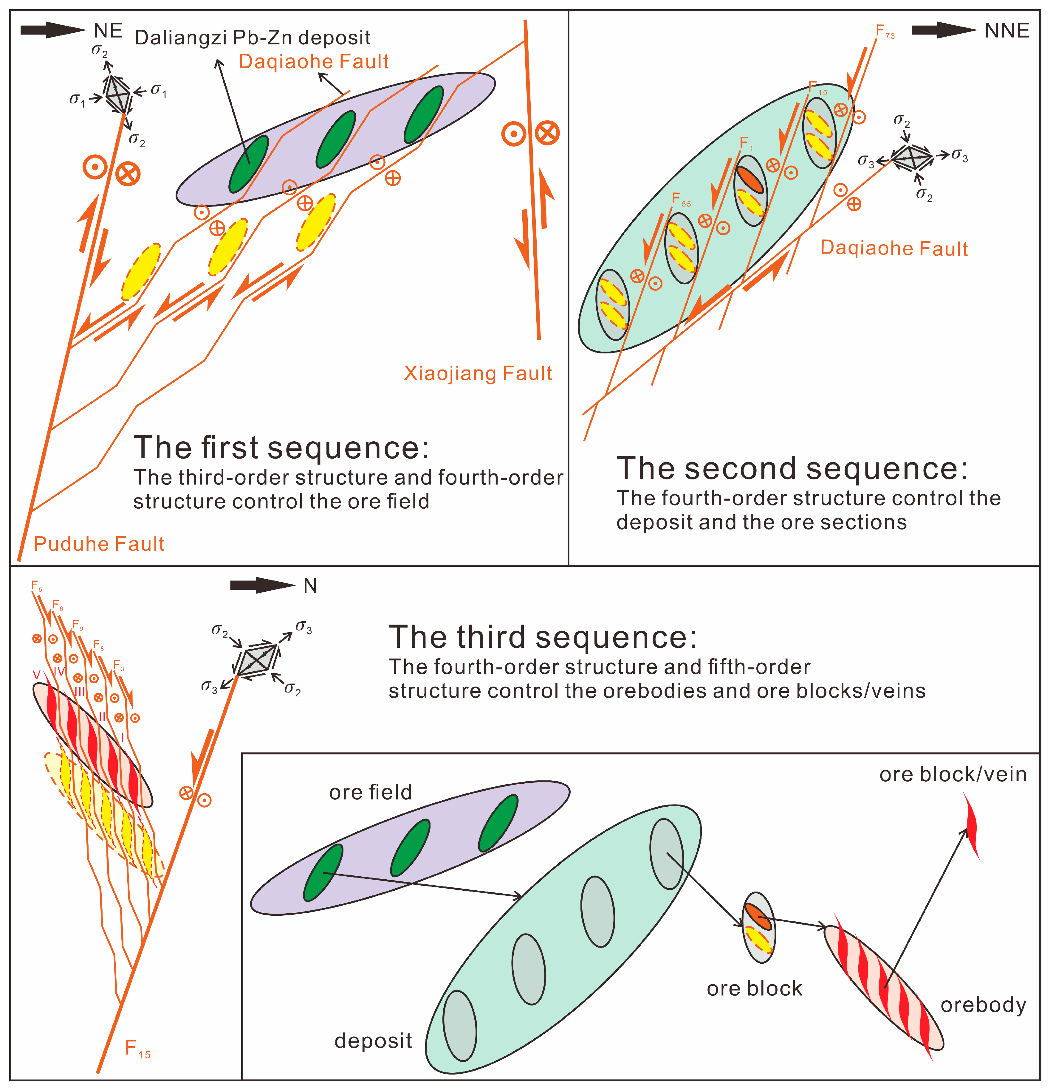 Wu, J.; Han, R.; Gong, H.; Wu, S.; Zhang, Y.; Li, C.; Li, L.; Hu, X.; Wang, Z. Structural Ore-Control Model of the Daliangzi Pb–Zn Deposit, Southwest China. Geosciences 2025, 15, 431. https://doi.org/10.3390/geosciences15110431