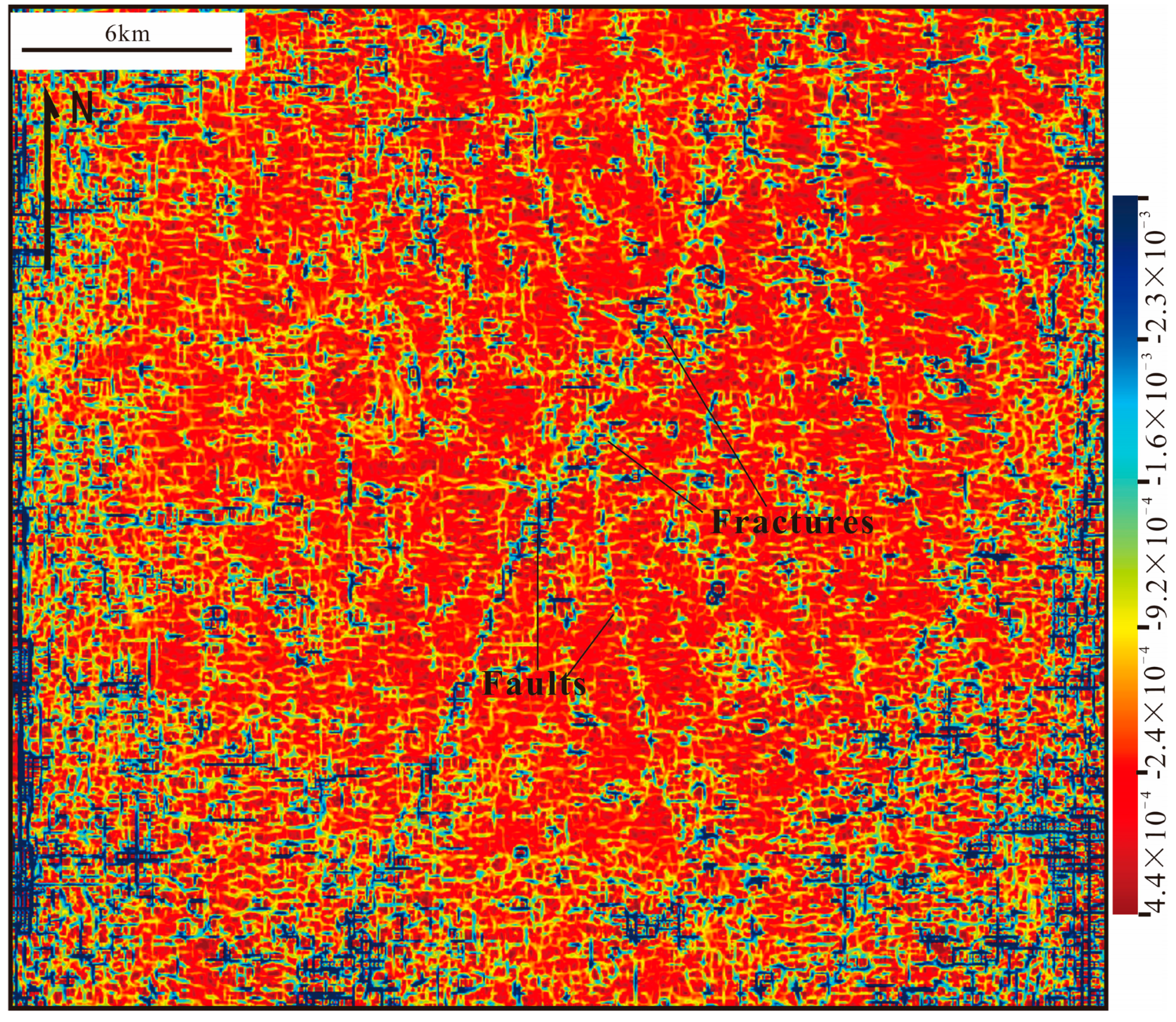 Fracture zones distribution in of instantaneous phase map.