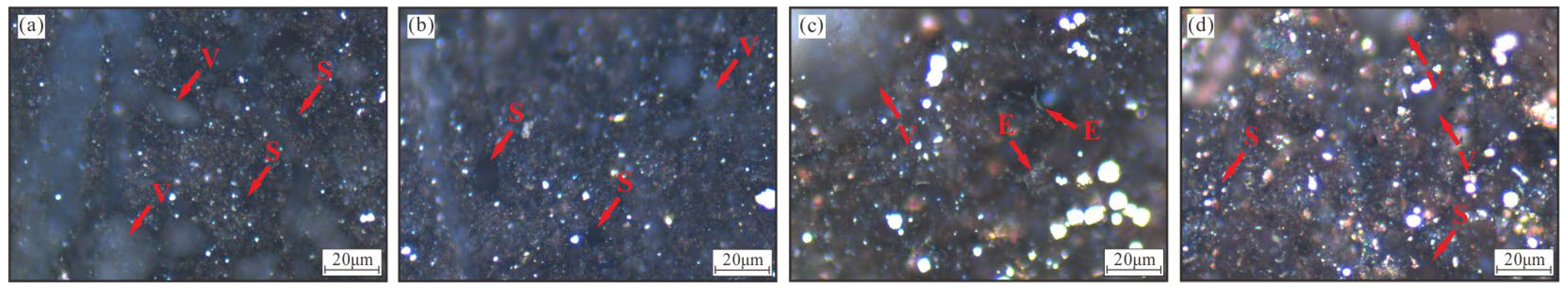 - Guo, T.L.; Deng, H.C.; Zhao, S.; Wel, L.M.; He, J.H. Formation mechanisms and exploration breakthroughs of new type of shale gas in Cambrian Qiongzhusi Formation, Sichuan Basin, SW China. Pet. Explor. Dev. 2025, 52, 64–78. [Google Scholar] [CrossRef]