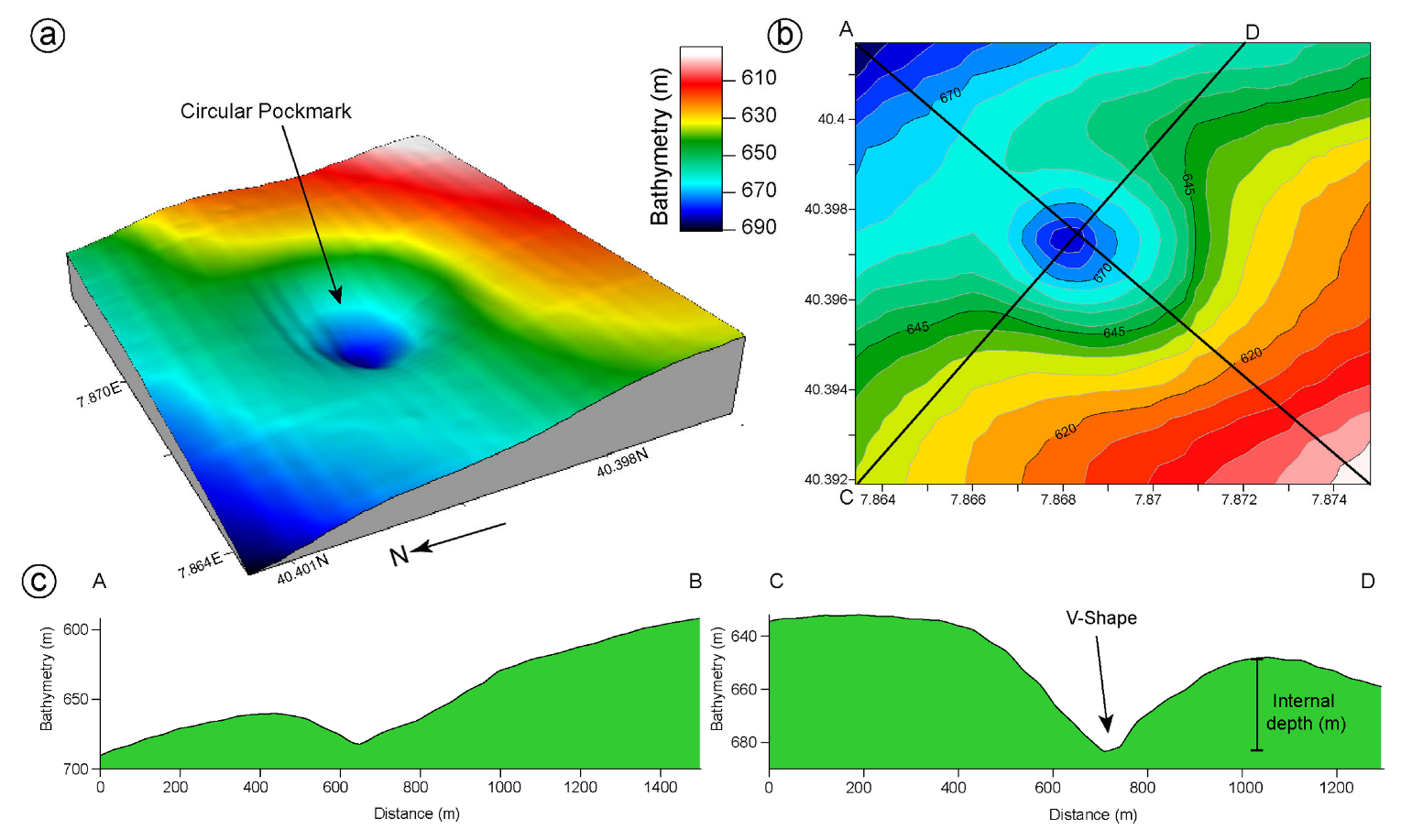 | Mega Pockmarks | >1000 m | Up to ~126 m | Continental margins; organized as cluster or isolated (e.g., Northern South China Sea) |