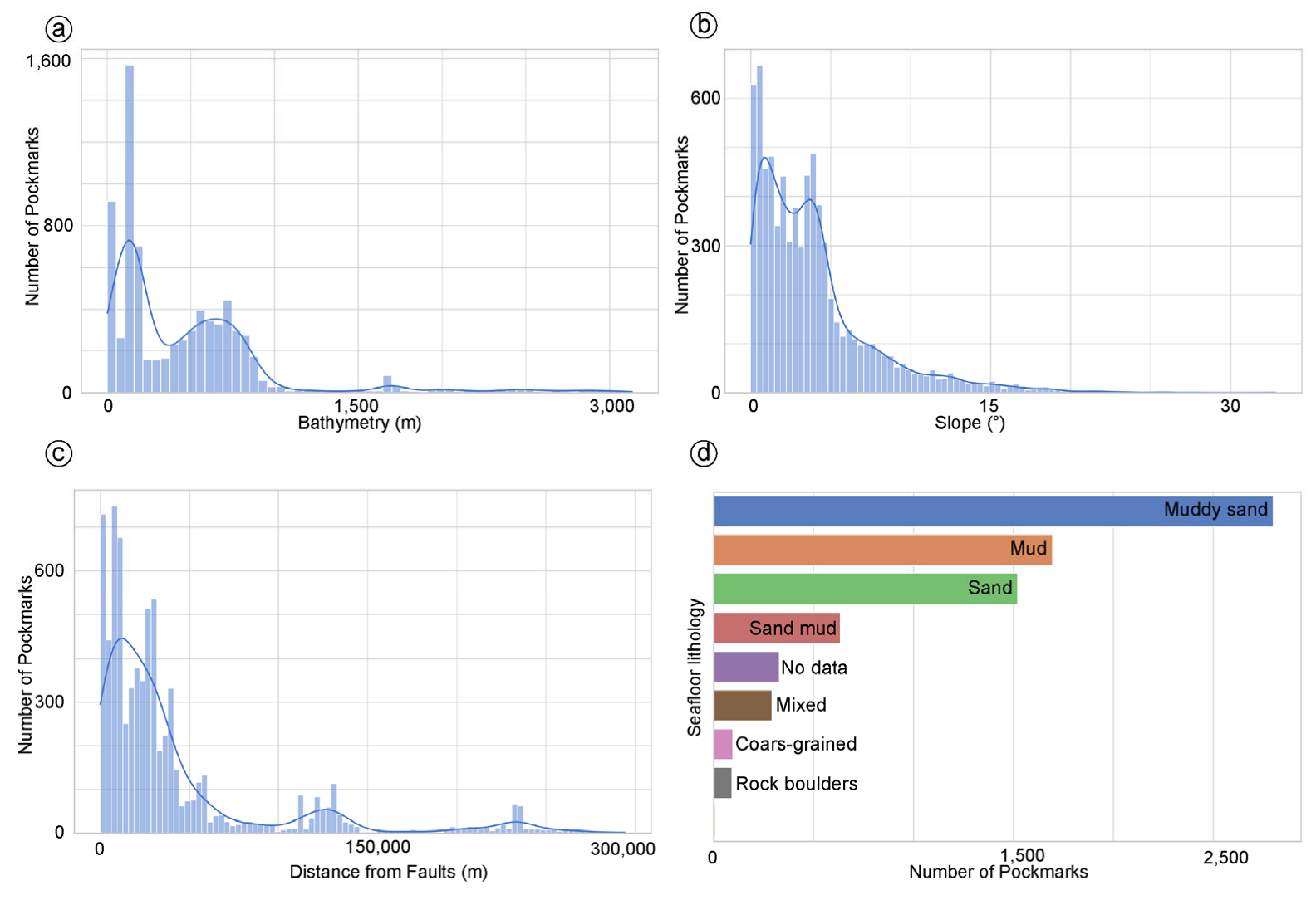 - To investigate the spatial distribution of pockmarks in relation to key controlling factors, including: