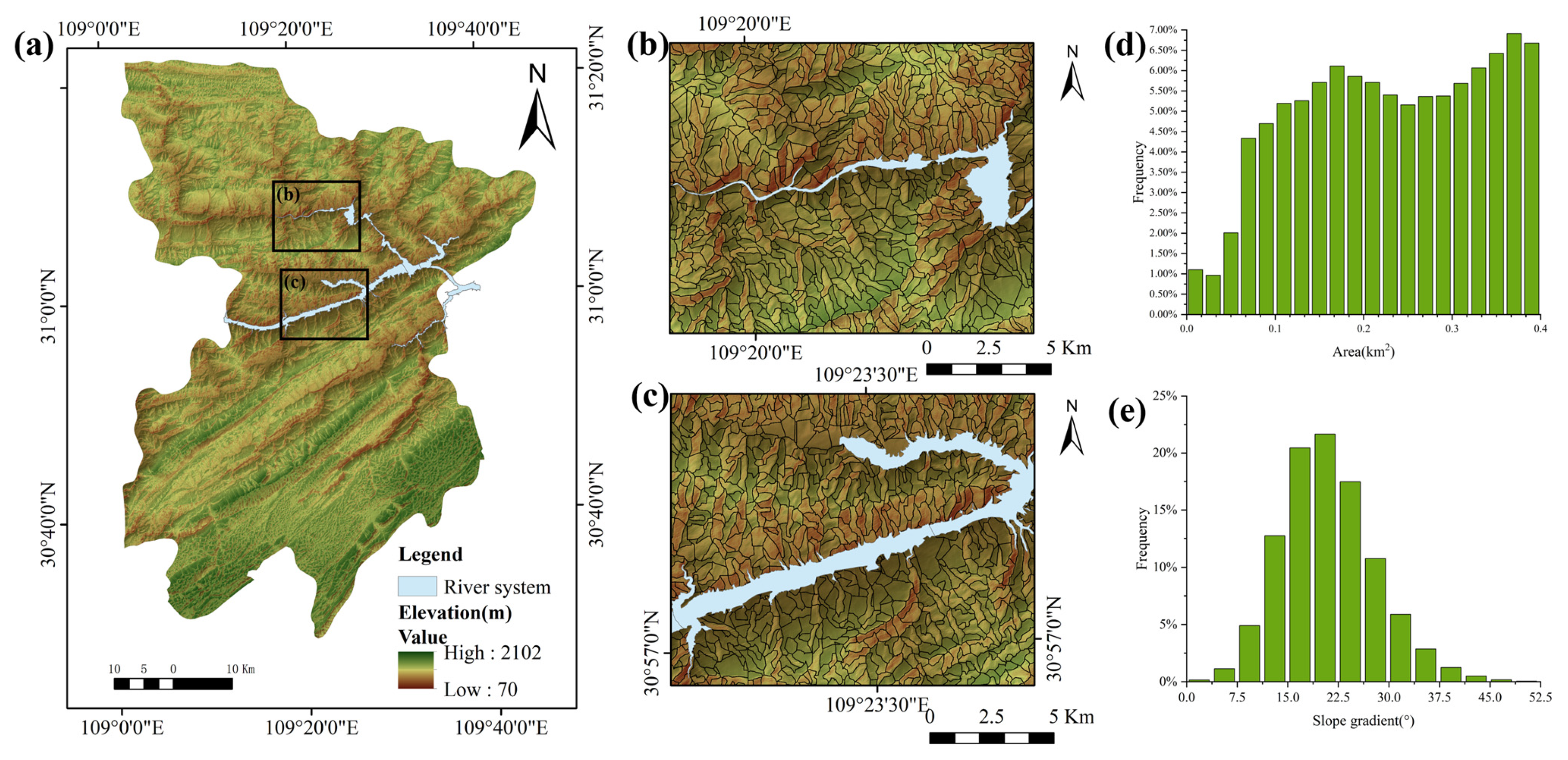 - Wang, K.; Zhang, S.; DelgadoTéllez, R.; Wei, F. A new slope unit extraction method for regional landslide analysis based on morphological image analysis. Bull. Eng. Geol. Environ. 2019, 78, 4139–4151. [Google Scholar] [CrossRef]