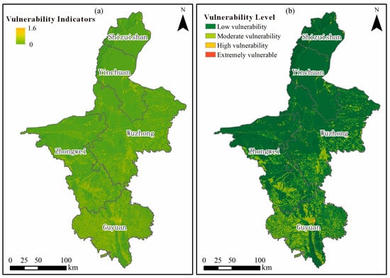 The final results indicate that extreme-risk zones encompass approximately 83.6 km2 (0.16% of the study area) and are primarily located in central Guyuan and northwestern Shizuishan. These regions coincide with steep loess slopes, active faults, and dense transportation corridors, where high hazard intensity converges with concentrated exposure. High-risk zones cover about 11,366 km2 (21.9%), distributed across most of Guyuan and southern Wuzhong, reflecting the combined influence of strong seismic shaking, high rainfall, and urban expansion.