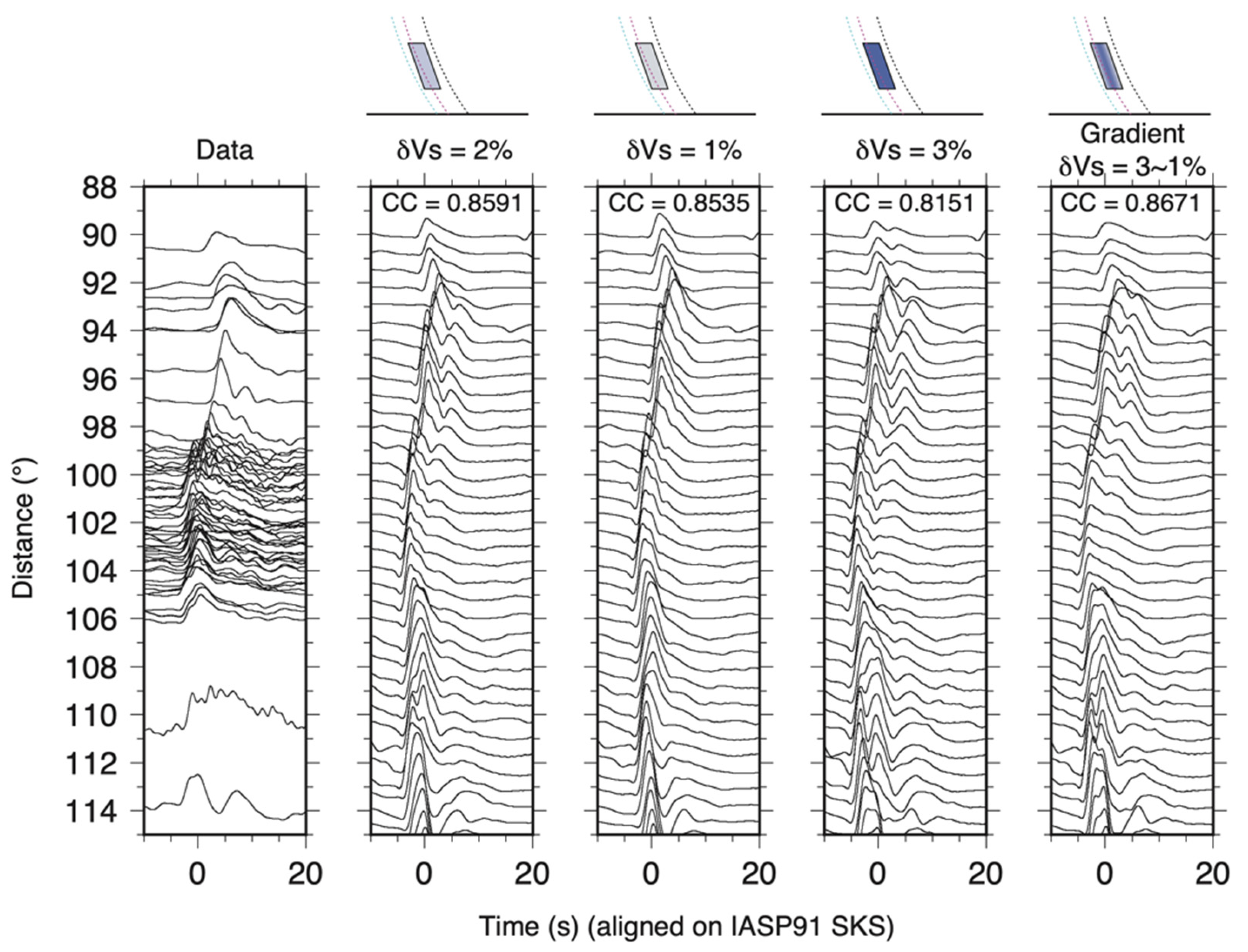 4.2. Three-Dimensional Structure of the Lower Mantle Anomaly