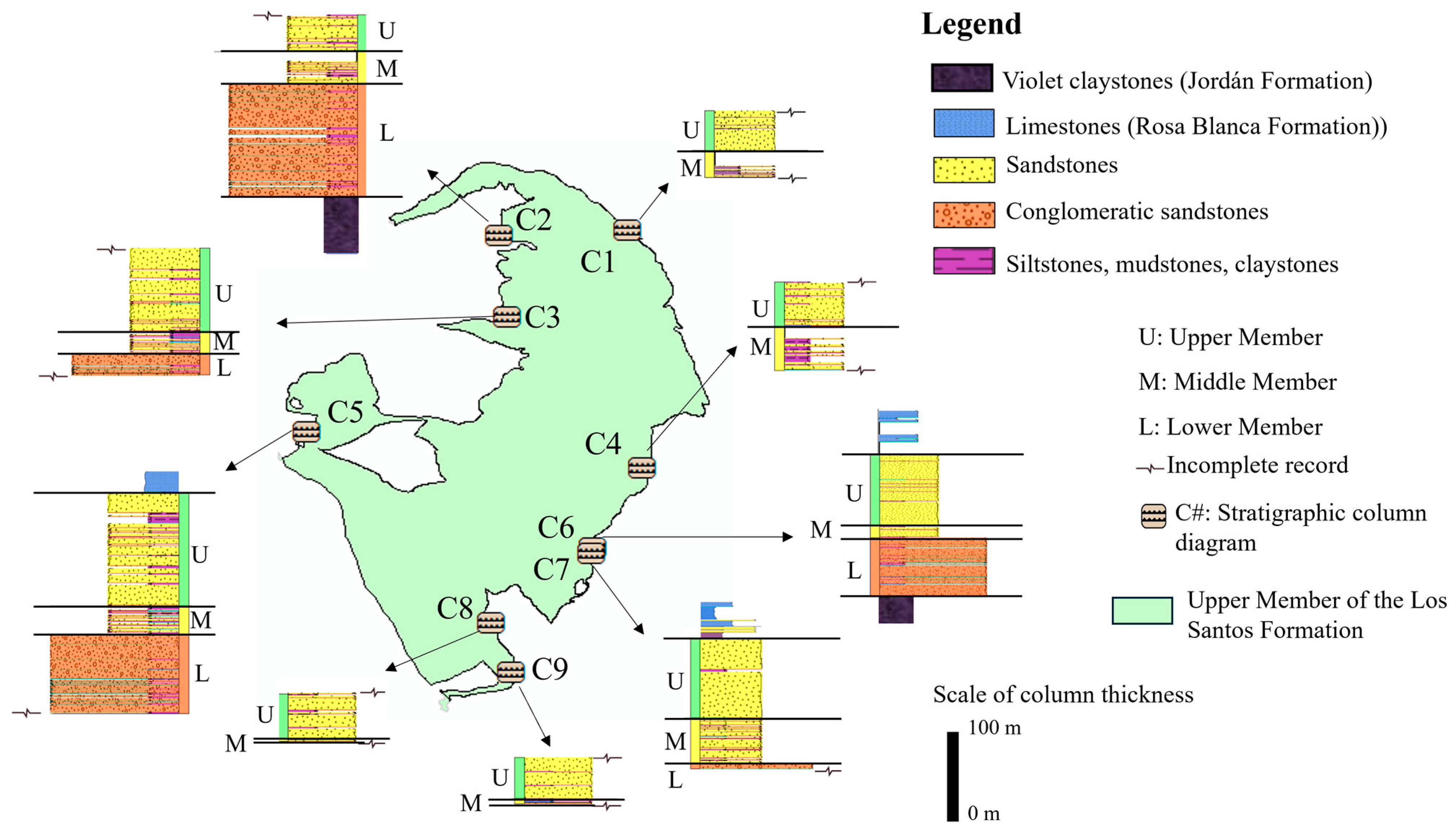 | Los Santos Formation | Columns | C1 | C2 | C3 | C4 | C5 | C6 | C7 | C8 | C9 | El Roto [42] | |