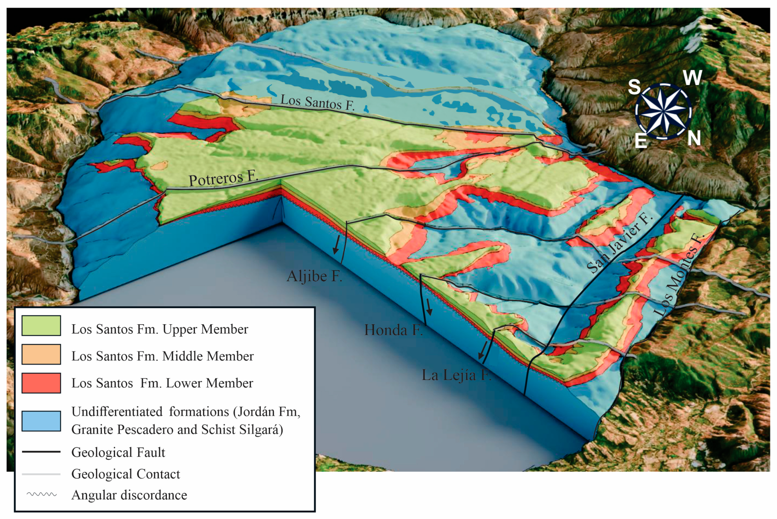 APA StyleCetina, M., Velandia, F., Gómez, S., Patris, N., Sánchez, A., Duarte, E., Carrillo-Hernández, M., Silva, J., & Taupin, J.-D. (2025). Identification of Aquifer Systems in Weathered and Fractured Sandstone Based on 3D Geological Modeling in the Mesa de Los Santos (Santander, Colombia). Geosciences, 15(12), 476. https://doi.org/10.3390/geosciences15120476