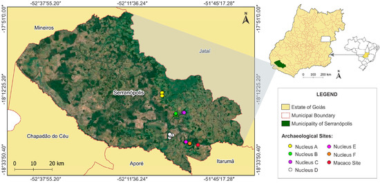 - Rubin, J.C.R.; Barberi, M.; Barbosa, J.B. Integrated analysis of archaeological sites of nuclei E–F and Macaco, Serranópolis, Goiás. Clio Arqueol. 2023, 38, 12–40. [Google Scholar] [CrossRef]