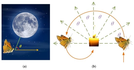 22]. During the night, moths maintain a fixed flight angle relative to the moon, as depicted in