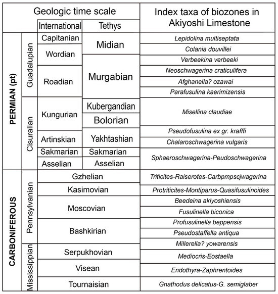 Biostratigraphy and biochronology of the Akiyoshi Limestone [63].