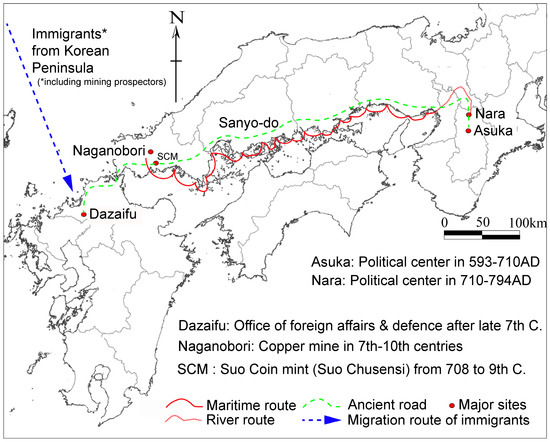 - Kitakaze, A.; Aoshima, A. Physio-chemical study of the excavated material from the Suo-Juzenji remains, Yamaguchi Prefecture, Japan: Especially the broken fragments of ancient casting coin. Mem. Fac. Eng. Yamaguchi Univ. 2019, 69, 1–7. Available online: https://petit.lib.yamaguchi-u.ac.jp/27709 (accessed on 1 February 2025). (In Japanese).