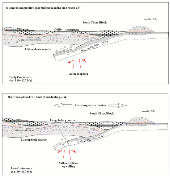 - Li, Z.; Qiu, J.S.; Yang, X.M. A Review of the Geochronology and Geochemistry of Late Yanshanian (Cretaceous) Plutons along the Fujian Coastal Area of Southeastern China: Implications for Magma Evolution Related to Slab Break-off and Rollback in the Cretaceous. Earth Sci. Rev. 2014, 128, 232–248. [Google Scholar] [CrossRef]