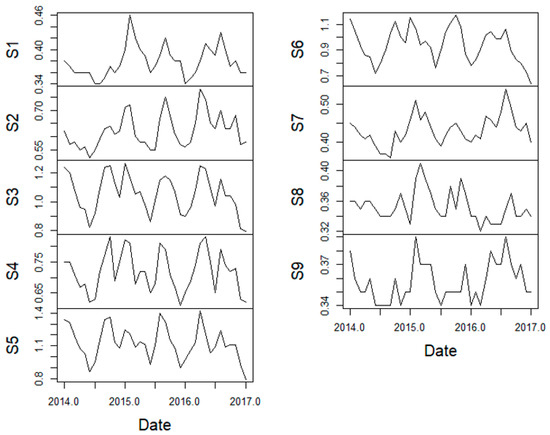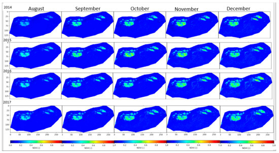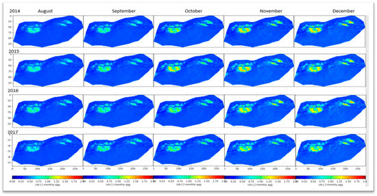 Example of final dataset after computing and preparing the original database (LAI) for the period (2014–2017).