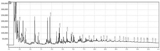The molecular composition of the Menilite shale sample, which is the subject of this research, was previously examined in earlier studies [28,37] using Py-GC/FID analysis. Table 7 and Figure 7 present the results of these studies.