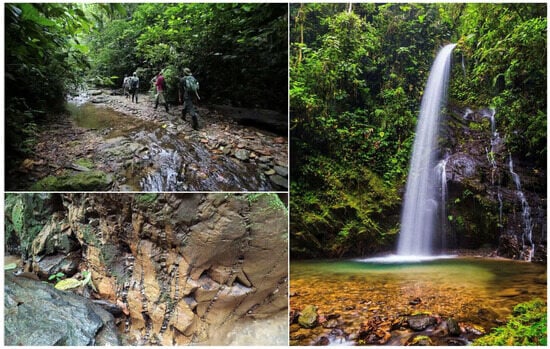 Situated in the northwestern edge of South America, Ecuador is a bio- and geodiverse country with a high amount of interesting geosites of international, regional, and local scale [42,44,47,51,52,53]. Together with the Galapagos Islands, its extension reaches some 283,561 km2. The continental part of Ecuador borders with Colombia and Peru, while its oceanic area limits with Costa Rica. Ecuador’s geomorphology comprises seven distinctive zones, being the coastal lowlands and the western and eastern highlands, while the Interandean Valley lies between these mountain ranges, the subandean zone, the eastern Amazonian lowlands, and the Galapagos archipelago, some 1000 km distant to the mainland [54,55].