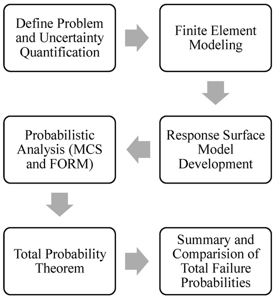 - Probabilistic Failure Analysis (Monte Carlo Simulation—MCS): The response surface model is integrated into MCS to estimate the probability of failure across a range of scenarios, accounting for variations in input parameters;