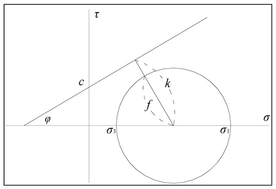 The Mohr–Coulomb criterion schematic using the rock fracture index, modified from reference [47] (See Equation (8) for the meaning of the letters in the figure).