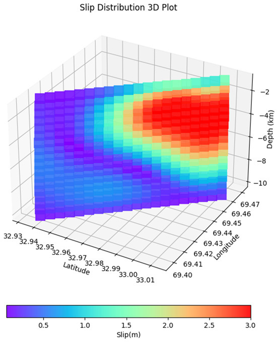 21 June 2022 Afghanistan earthquake fault model showing variable slip distribution along the fault plane.