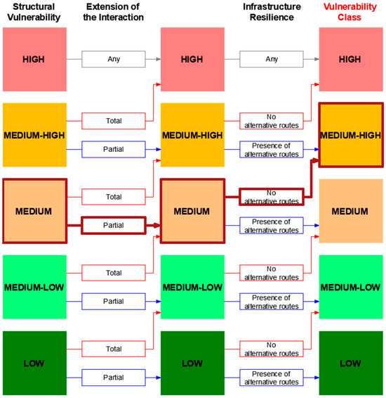 Finally, the road exposure, as suggested by the method, is set as medium since it is a local road. Being non-strategic, the final E remains medium (Figure 10).
