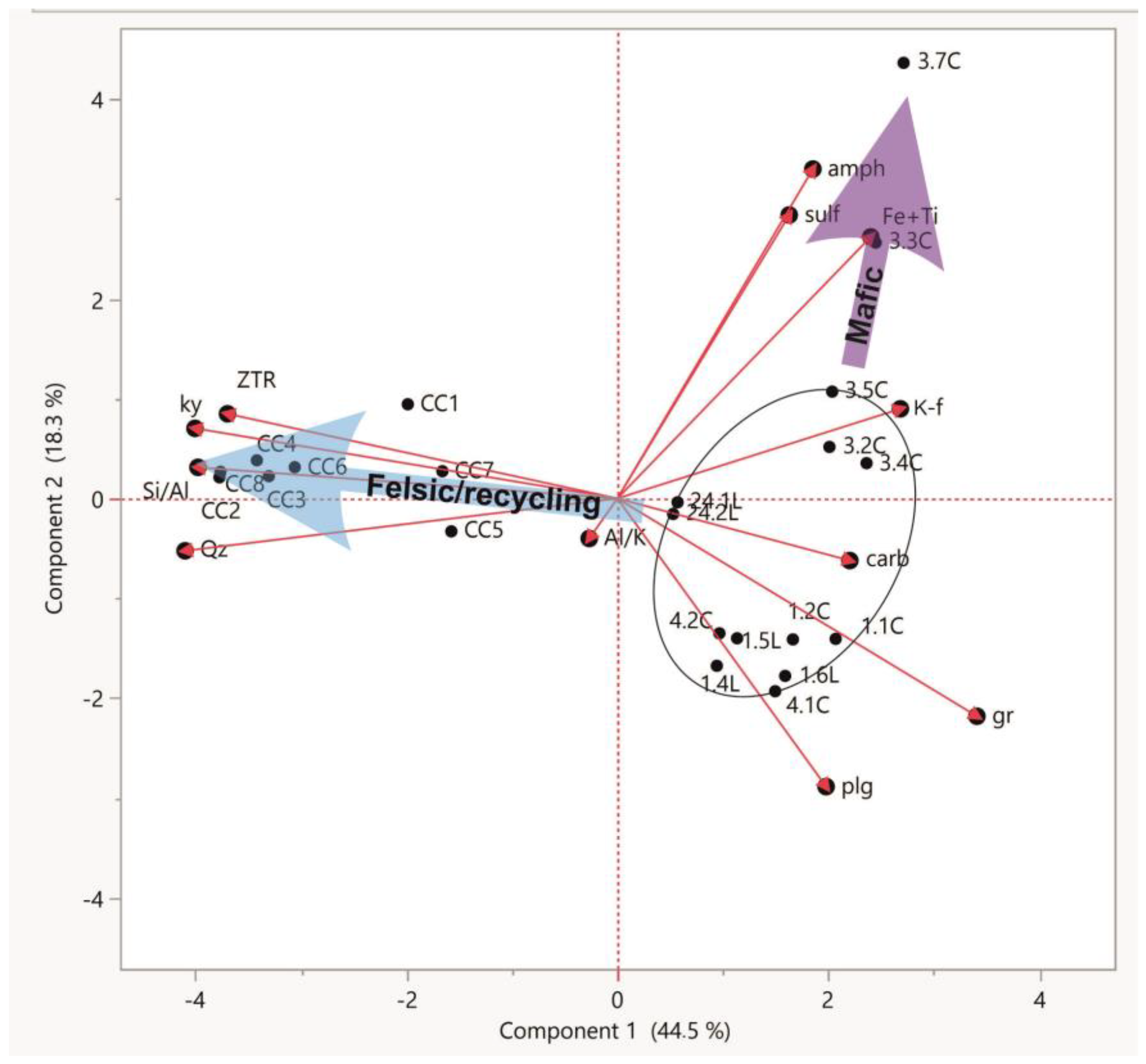 - Zhang, Y.; Pe-Piper, G.; Piper, D.J. Sediment geochemistry as a provenance indicator: Unravelling the cryptic signatures of polycyclic sources, climate change, tectonism and volcanism. Sedimentology 2014, 61, 383–410. [Google Scholar] [CrossRef]