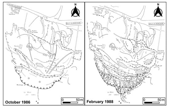 Evolution of the Rilly landslide between 1986 and 1988 [24].