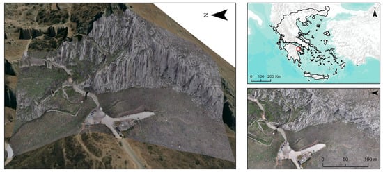 In the last decade, several studies have increasingly adopted structure-from-motion (SfM) techniques and 3D point cloud analysis to assess discontinuities and simulate possible rockfall trajectories [16,17]. Technological advances are complementing existing classical methods that have developed inference methodologies for rockfall mitigation and other phenomena, but they lack primary data from large areas and data accuracy. These methods provide accurate data for numerical simulations, contributing to better risk mitigation strategies in vulnerable archaeological areas [5,18,19]. Considering these developments, the present study applies a fully digital methodology to analyze the stability of rocky slopes and identify hazard zones in the surrounding area of the archaeological site of Ancient Corinth (Acrocorinth) in Greece.