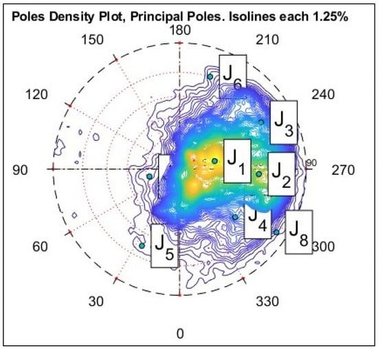 As mentioned before, DSE software was used to extract the principal poles of discontinuities (dip and dip direction) in the entire research area (Table 2 and Figure 8).