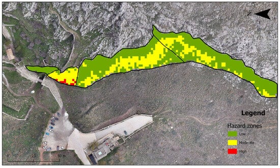 The findings confirm the applicability of UAV-based photogrammetry and 3D modeling for rockfall risk assessments in inaccessible and protected heritage environments. Moreover, the hazard zonation map can serve as a decision-support tool for prioritizing maintenance works and the design of mitigation measures, particularly in high-risk areas like Zone B near the visitor entrance and parking area.