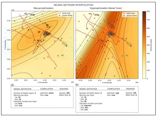 Subsurface mapping is one of the most crucial geological structural interpretation techniques, especially for mapping deep regional markers and solving regional geological settings of the analyzed area. Although there is no exact interpolator, some algorithms offer significant advantages compared with others. Traditionally, kriging techniques (including geostatistical simulations) offer the most reliable maps, although their effectiveness largely depends on the dataset size and the statistical and spatial distribution of data. For smaller datasets (fewer than 20 values), purely linear statistical interpolation methods (e.g., inverse distance and nearest neighbourhood) are often the winning choice. However, in the past two decades, some interpolation algorithms have been incorporated into neural network (NN) algorithms, allowing the mapping of variables like other interpolation algorithms. Due to the complexity of neural architecture, there are many more parameters (activation functions, number of layers, etc.) that could be set than in “classical” interpolation algorithms (search radius, distance weighting, etc.), which make the results difficult to verify.
