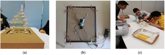 Although it may appear suited for younger students, this activity is best for those aged 12 and older, as it requires fine motor skills to assemble and manipulate the delicate spaghetti structures (Figure 6c). The duration of this activity ranges from 20 min to 1 h, depending on the depth of the experiments and the educational setting.