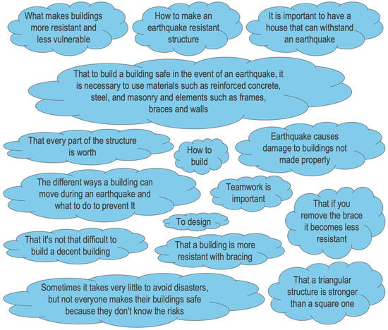At this stage of the implementation, the introduction of the learning module was systematised: students discussed ground motion and construction materials, supported by photographic evidence illustrating different structural behaviours during earthquakes.