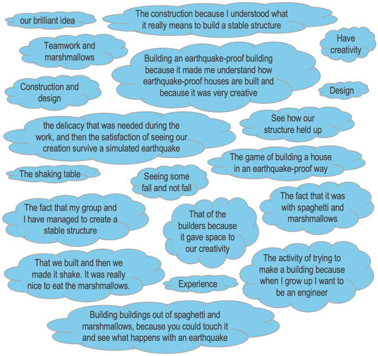 The Shake it! learning module was initially developed as part of the third edition of the Geoscience Communication School, held in Castiglione del Lago, Italy, in 2018 [42] where two of the authors participated as lecturers. This initiative aimed to enhance postgraduate students’ skills in communicating seismic risk management to school students. Since the school also included hands-on activities using easily accessible materials, the first version of Shake it! featured only the Shake Box activity, which was presented to postgraduate students. The activity was discussed in detail with them before they tested it with two classrooms of 5th grade schoolchildren. One notable challenge was the language barrier: the postgraduate students did not speak Italian, while the schoolchildren spoke only Italian. However, the highly visual and interactive nature of the Shake Box and marshmallow-based structures allowed participants to engage seamlessly. This experience demonstrated how hands-on learning tools can transcend linguistic differences, making complex scientific concepts accessible regardless of language proficiency. However, the experience showed that 10-year-old schoolchildren needed assistance in handling the spaghetti and marshmallow structures.